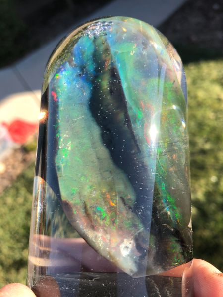 Virgin Valley Best Big Black Precious Opal. Beautiful multicolor fire with reds predominating. Approximately 125 grams or 625 cts.